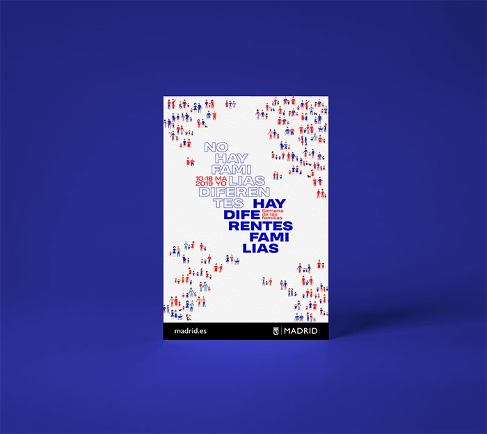 La campaña gráfica, desarrollada por La Despensa para el Ayuntamiento de Madrid, cuenta con unas ilustraciones de trazo sencillo que permiten a la gente identificarse y encontrarse entre las más de 80 familias creadas.