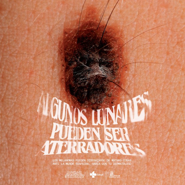 De este modo, la campaña ha colocado carteles en el lugar adecuado para que pacientes y médicos puedan entablar una conversación sobre estos lunares: la planta de dermatología del Complejo Asistencial Universitario de Salamanca, con la intención de aprovechar cualquier visita y convertirla en una revisión de estas manchas.