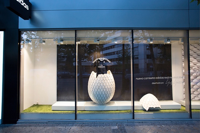 Para la presentación, Grey desarrolló un teaser para los escaparates de la tienda del Bernabéu y de todas las tiendas oficiales Adidas Real Madrid, en forma de huevo gigante. El día de la presentación los huevos se abrieron y apareció la nueva camiseta. En el interior de la tienda del Bernabéu se creó un mueble con cabeza de dragón donde se colgaron las camisetas y una percha simulando el cuerpo del dragón. El día del evento, James destapó la tela que cubría el mueble para descubrir a la prensa y a los aficionados presentes en el acto, el dragón gigante.