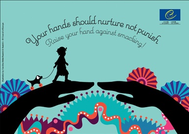 La campaña "Levanta tu mano contra las bofetadas" -que ha sido desarrollada por el Consejo de Europa con la colaboración de la agencia londinense Saatchi & Saatchi- se difunde a través de spots en televisión y una página web, así como paquetes de libros y folletos para su distribución entre legisladores y profesionales de la educación, la sanidad, la justicia y los medios de comunicación.