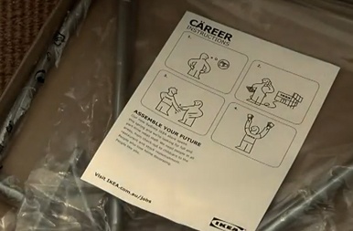 Ikea se está expandiendo rápidamente por Australia y para ello necesitaba cientos de empleados. Y ¿cómo dar con ellos?, pues al más puro estilo de la marca: creando una hoja de instrucciones para "montarse una carrera". Más fácil imposible: se imprimieron centenares de dichas hojas y se introdujeron en las cajas más planas de los productos Ikea para comunicar la demanda de puestos de trabajo entre sus propios clientes. De esta manera no sólo se lograba llegar a personas ya interesadas por la marca, sino que además ellas mismas se ocupaban de la distribución del flyer que podían repartir entre familiares y amigos. Los resultados de esta original y sencilla acción no pueden ser más contundentes: 0 dólares en medios, 0 dólares en servicio postal y 4.285 solicitudes de empleo.