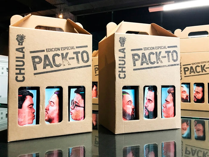 La cerveza artesana madrileña CHULA envía a los principales líderes políticos de nuestro país un "Pack-To" de seis botellas con una "cariñosa" imagen de Pedro Sánchez, Pablo Casado, Pablo Iglesias, Albert Rivera y Santiago Abascal en cada etiqueta.