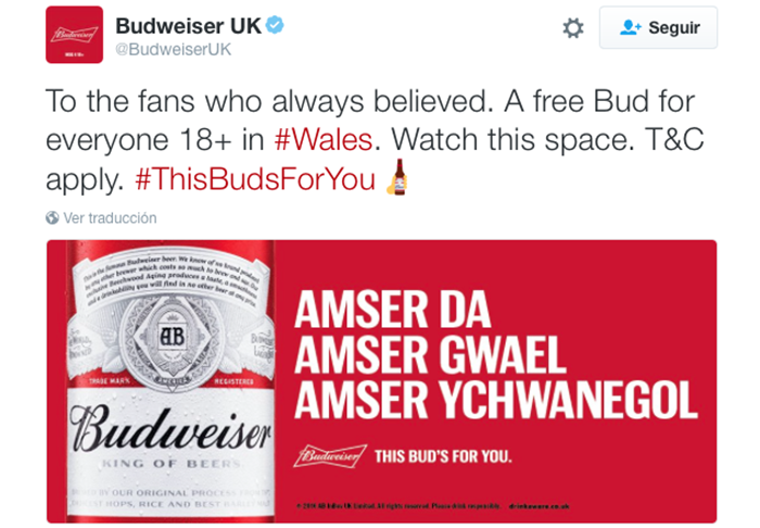 En general, la audiencia de Budweiser es apasionada por el fútbol. La marca se asoció con Twitter y con la emisora de la #EURO2016 @ITVSport, para ofrecer momentos clave en tiempo real durante el campeonato con Twitter Amplify.