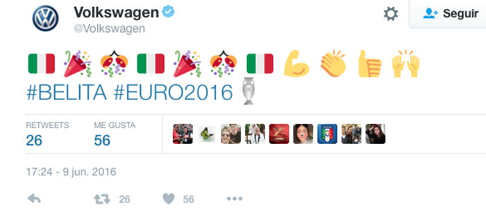 Twitter analiza las mejores campañas en Europa durante la #Euro2016: desde la actualización de emojis para celebrar los goles en tiempo real por parte de Volkswagen hasta la creación de contenido exclusivo por parte de los directivos de Carrefour Italia.