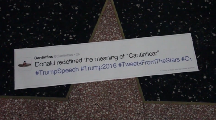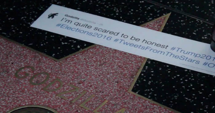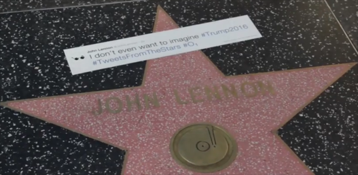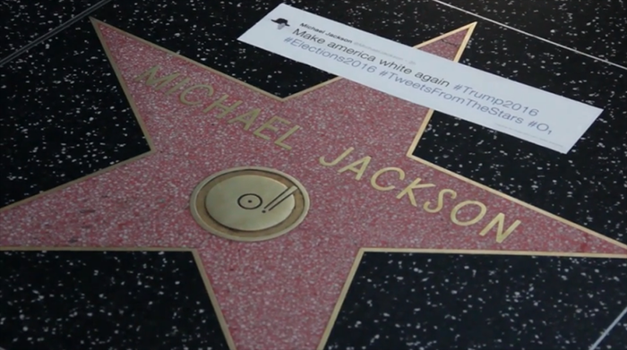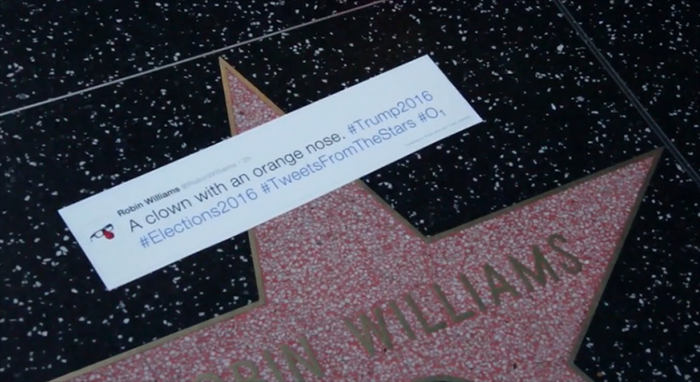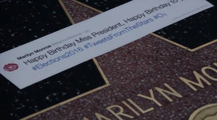 A pocas horas de que se celebren las elecciones presidenciales en EE. UU, no hay un favorito claro. Periodistas de EE.UU apuntan a que la mayoría de las figuras del deporte apoyan a Donald Trump, mientras que músicos y estrellas del cine tienden a apoyar a Hillary Clinton (con sorprendentes excepciones como son los casos de Susan Sarandon o Clint Eastwood). Con el fin de hacer hincapié en este dato y frenar el ascenso de Trump, un grupo de creativos hispanos de Los Angeles ha puesto en marcha una interesante campaña que, bajo el claim "#Tweets From The Stars", ha dado voz a las estrellas fallecidas del paseo de la fama de Hollywood. Los tweets, que han sido pegados junto a la estrella de su pretendido autor, no tienen desperdicio: