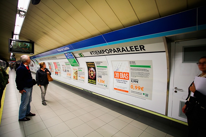 Las letras llegan al Metro de Madrid, en concreto a la Línea 10, una de las más concurridas de toda la red. Y es que, de la mano de JCDecaux, Amazon ha creado en el andén de Plaza Castilla toda una tienda virtual de libros que, bajo el concepto "Tiempo para leer", busca fomentar la lectura en tiempos de espera.