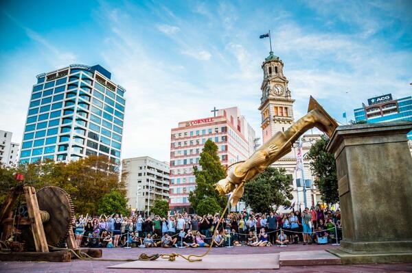 La cadena neozelandesa Sky TV erige una estatua del Rey Joffrey, que los fans de la serie "Juego de Tronos" ayudan a derrumbar en vivo y en directo tuiteando sus comentarios con el hashtag #bringdowntheking.