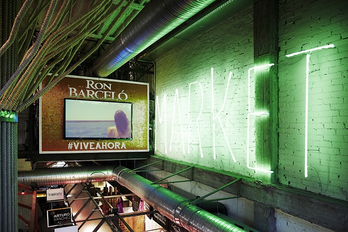 Ron Barceló ha desarrollado una innovadora decoración y actividades de ocio en las que el verano se convierte en el principal protagonista. Una sorprendente columna decorada con los tapones dorados de sus botellas, escaleras que simulan las espectaculares playas caribeñas, una impresionante cortina de cadenas de más de cuatro metros y diversas pantallas interactivas con vídeos e imágenes de aguas cristalinas y arena blanca conseguirán trasladar a los asistentes desde Malasaña hasta las paradisíacas playas de República Dominicana. Asimismo, los asistentes podrán interactuar a través del hashtag #mercadoronbarcelo para compartir en el momento imágenes de su experiencia.