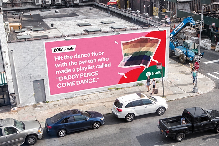 “Sé tan cariñoso como la persona que incluyó 48 canciones de Ed Sheeran a su playlist `Amo a los pelirrojos”, “Shape of You ha sido la canción más retransmitida de la historia” o "Evita a los profesionales médicos que añadieron estas canciones a su playlist del quirófano: `Stressed Out´, `Can´t Feel My Face´ o `Stairway to Heaven" son sólo algunos de los comentarios que dan forma a la nueva campaña de exterior de Spotify. Bajo el título "2018 Goals" (Metas para el 2018) y siguiendo la misma estrategia del año pasado, dicha campaña recopila un año de streaming musical a través de los datos de sus usuarios.