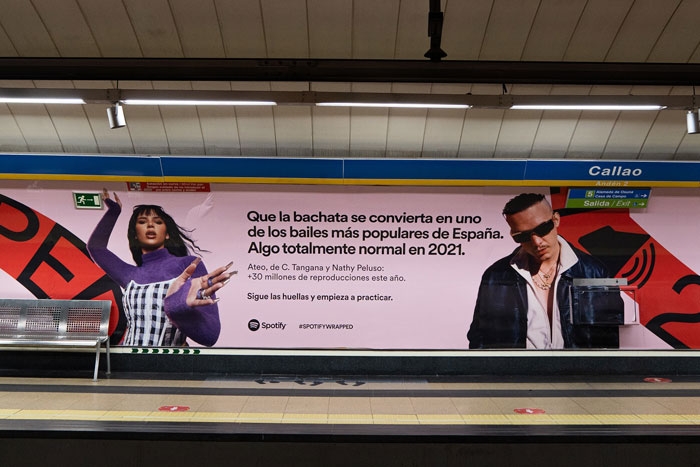 Spotify acaba de lanzar su campaña mundial de "Wrapped 2021", presentando a los artistas y creadores más populares de este año. Se desarrollará en soportes tradicionales y digitales, cortos de vídeo, redes sociales y, por supuesto, en la app de Spotify en 33 mercados de todo el mundo. Y en España, además, Spotify ha tomado el Metro de Madrid, mostrando algunos de los artistas que más se han reproducido en Spotify en nuestro país y que han protagonizado momentos únicos este año como C. Tangana, Naty Peluso, Rauw Alejandro, Lola Indigo, Bad Gyal, Omar Montes y Aitana.