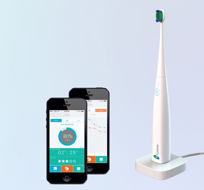 1. Cepillo de dientes inteligente conectado a Internet de Kolibree. Incluye un sensor que detecta cuánto sarro se elimina en cada uso y almacena los datos del cepillado en una app para smartphones.