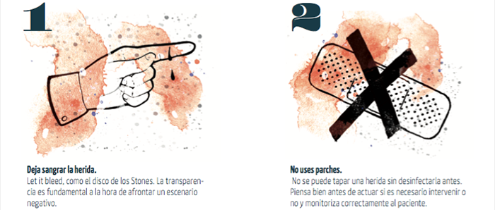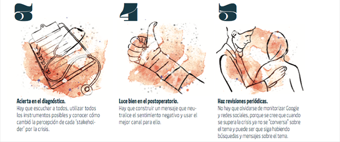También es importante tener en cuenta lo que jamás se debe hacer, evitando el sobredimensionamiento o la infravaloración de los problemas. “Un error común es negar el problema o dar información no contrastada, lo cual suele empeorar la situación”, afirma Rose de la Pascua. “Son muchos los casos en los que es peor el remedio que la enfermedad", en los que “ante una situación no tan grave, una reacción no estratégica ha amplificado el problema”, valora. Sergi Guillot también apunta que jamás se debe mentir o “intentar arreglarlo borrando comentarios desafortunados”, ni tampoco “lanzarse al ataque” contra la fuente del problema. Por su parte, Ludi García cree que “ni hay que dejarlo para mañana ni entrar en pánico”. “Una crisis online requiere una gestión inmediata, aunque la decisión pueda ser incluso no hacer nada”, recomiendan desde Ketchum.