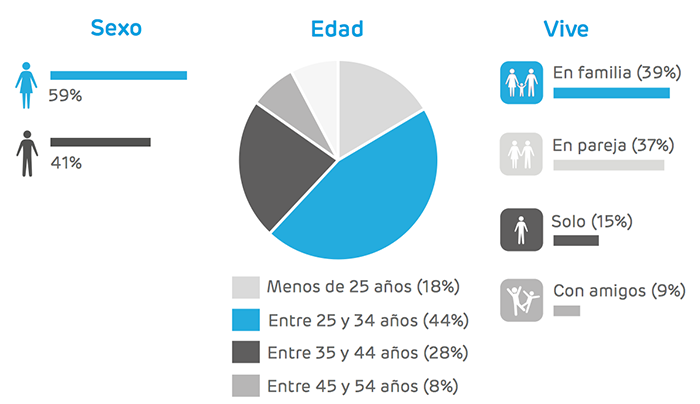 - A grandes rasgos, el usuario que pide comida a domicilio es una persona joven, cosmopolita, de poder adquisitivo medio y que vive en familia o en pareja.