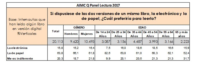 AIMC (Asociación para la Investigación de Medios de Comunicación) ha presentado los resultados de una segunda edición de este estudio realizado a través del AIMC Q Panel, su propio panel de internautas, en el que se muestran los hábitos de lectura –incluyendo el formato papel y el electrónico– de los usuarios de Internet.