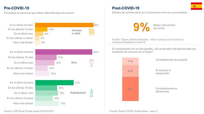 Esta semana la agencia Wavemaker está analizando el impacto del Coronavirus y el confinamiento en el consumo de alcohol. Para hacerlo, están utilizando datos del estudio “Consumer Reactions to Covid-19” de Toluna y Harris Interactive, y los datos de Kantar de su tercera ola del barómetro sobre el Covid-19 con datos del Panel LIVE utilizados como punto de referencia para el consumo de alcohol en diferentes tipos de bebidas pre-COVID-19.