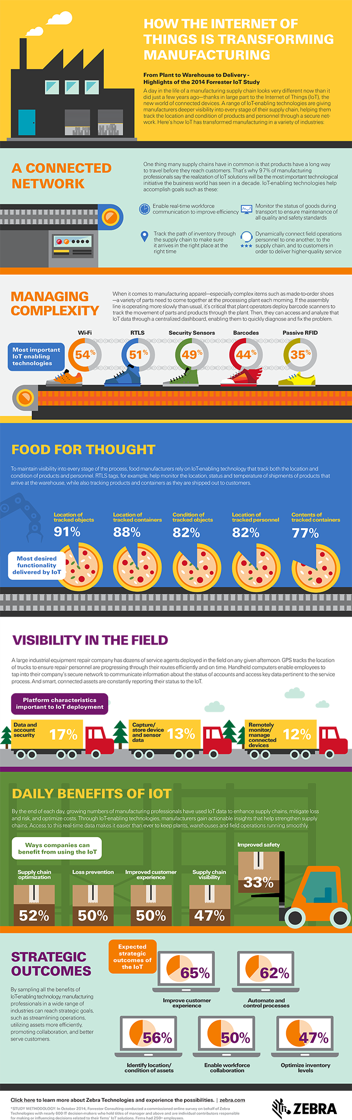 Zebra Technologies Corporation, compañía especializada en productos y servicios que proveen visión a tiempo real de los activos empresariales, ha dado a conocer los resultados de un estudio que demuestra que la mayor parte del sector industrial (el 97%) considera que el Internet de las Cosas (IoT) será una de las iniciativas tecnológicas que tendrán mayor impacto en el sector. Un alto número de los encuestados espera que con IoT sea posible obtener datos sobre localización y condiciones, lo que mejorará las cadenas de suministro, reduciendo los costes y los riesgos y fortaleciendo los procesos y la optimización de los costes. De esta manera será posible una mejora en las operaciones, en la explotación de los recursos y en el servicio al consumidor.
