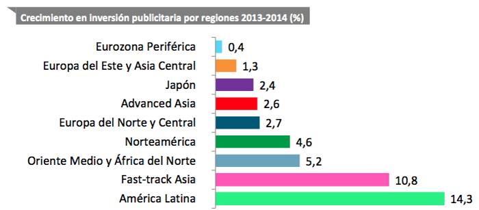 El rápido desarrollo de la tecnología asociada a la publicidad digital ayudará al mercado publicitario global a crecer el 5,3% en 2014, por encima del 3,9% de 2013. El crecimiento seguirá siendo fuerte durante los próximos dos años: 5,3% en 2015 y 5,9% en 2016.