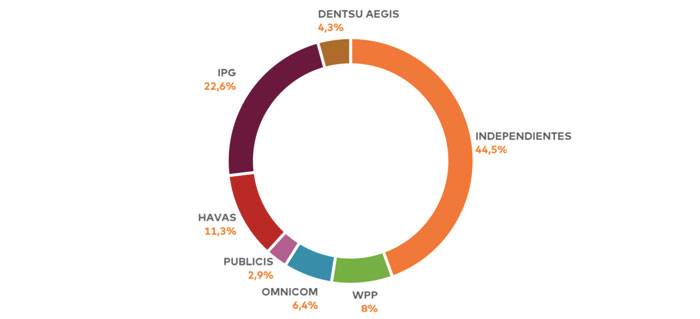 La suma del Nuevo Negocio asignado a las agencias independientes ha supuesto un 44,5% del Nuevo Negocio generado en este periodo, lo que las sitúa en primera posición. Los grupos internacionales, por su parte, se reparten el 54,5% restante. Destacan la asignación de las marcas Schweppes y La Casera a La Despensa, las campañas electorales del PSOE a la agencia Kitchen y la cuenta de Lowi (Vodafone) a Bungalow25.