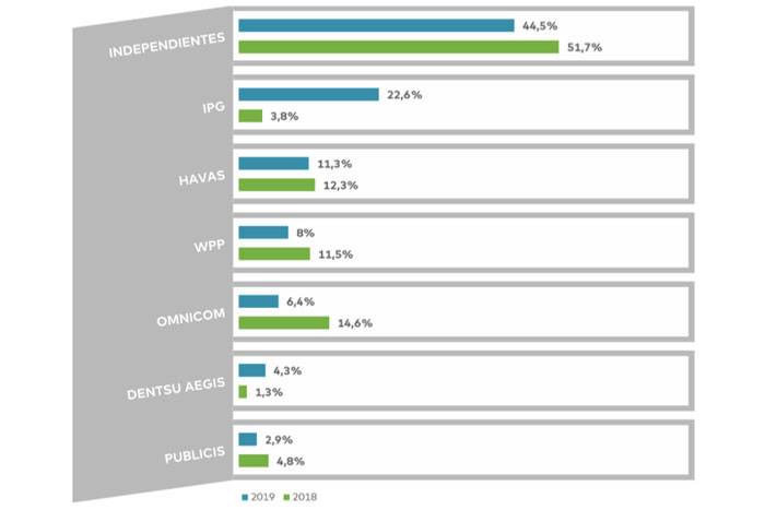 Interpublic es el grupo internacional que ha logrado mayor volumen del Nuevo Negocio en 2019, con el 22,6%. Los movimientos más importantes en el grupo han sido las asignaciones de Opel, Movistar e Iberia a McCann.