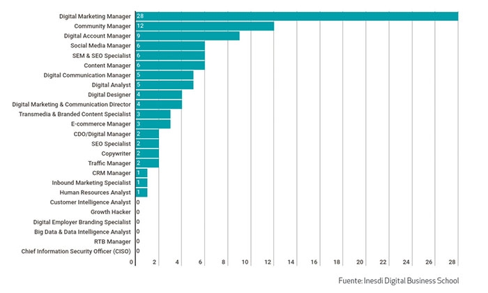 Los perfiles más solicitados por las empresas en el último año son el Digital Marketing Manager, Community Manager, Digital Account Manager, Social Media Manager y el SEO & SEM Specialist. Así lo revela el Estudio Top 25 Profesiones Digitales 2018 realizado por Inesdi Digital Business School, en colaboración con Íncipy Digital Strategic Partner e Indigital Advantage.