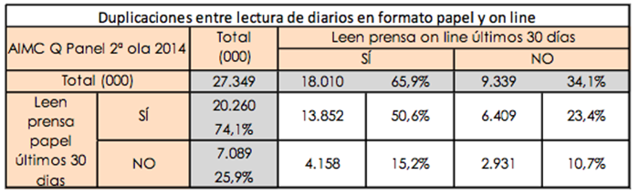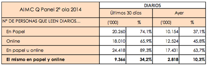 Según el último estudio de AIMC Q Panel, un 51% de los usuarios que acceden a la Red afirma haber consumido tanto prensa impresa como en formato electrónico en el último mes.