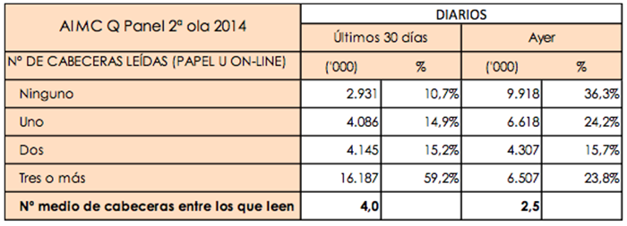 - El número de cabeceras distintas (papel y online) asciende a cuatro al mes y a 2,5 “en el día de ayer”.