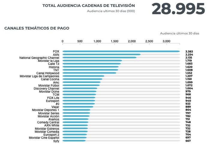 Según los datos de la 3ª Oleada del EGM 2020, Televisión vuelve a ser el medio con mayor audiencia (84,2%), seguido muy de cerca por Internet (82,8%) y Exterior (76,0%). El cine, muy afectado por la pandemia, se coloca en último lugar con un 1,2%.