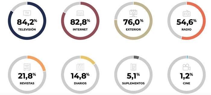 Las restricciones impuestas por la pandemia han provocado una digitalización generalizada que ha favorecido la penetración de Internet. Los soportes con mayor audiencia son:
