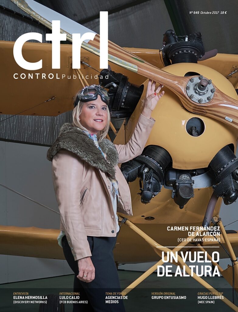 Carmen Fernández de Alarcón, CEO de Havas España, se asoma a nuestra portada de octubre emulando a Amelia Earhart. La aviadora estadounidense fue la primera mujer en cruzar el Atlántico en solitario y Carmen rompe barreras de género liderando una agencia en un sector que, desafortunadamente, sigue dominado por hombres.